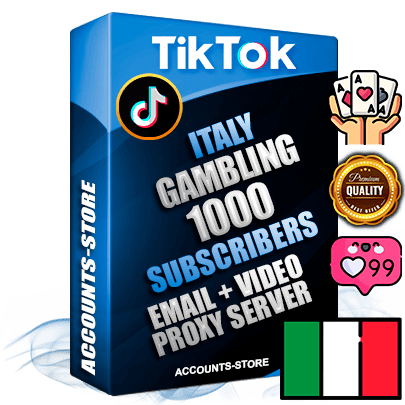 Professional Italian PREMIUM TikTok accounts of manual registration and farming for the GAMBLING niche with high trust, history, profile photos, and videos — fully themed and optimized for GAMBLING advertising and promotion — 1000 niche-related live active subscribers, 2018–2022 registration years, Verified Email (included) + Cookie JSON for secure import and login to the account + User Agent + high-quality content filling (profile photo, banner, and videos). Fully ready for targeted campaigns and ad launches from any country. Perfectly holds ads without bans. Ideal for any earning schemes, affiliate promotions, and marketing projects. Quality unlimited IPv4 proxy server included.